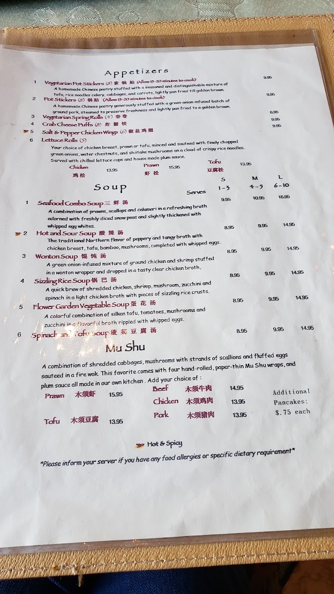 For beef lovers, the Chinese Steak on a Sizzling Plate (铁板牛柳) is a standout choice. Strips of juicy steak are perfectly marinated and paired with crispy vegetables, creating an unforgettable experience for the taste buds at $22.95. If you seek something with a kick, the Mongolian Beef and Mongolian Lamb dishes, both priced at $21.95 and bursting with spice, take your meal to the next level of excitement. Each bite is a harmonious blend of textures and flavors, crafted to perfection.